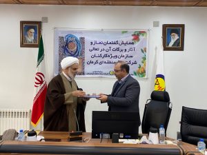 در این جلسه با اهدای لوح تقدیر به امضای حجتالاسلام والمسلمین محسن قرائتی رئیس ستاد اقامه نماز کشور و هدیه معنوی به مهندس حمیدرضا حبیبی مدیرعامل شرکت برق منطقه ای کرمان از اقدامات شرکت در رابطه با ترویج فرهنگ نماز تقدیر شد.