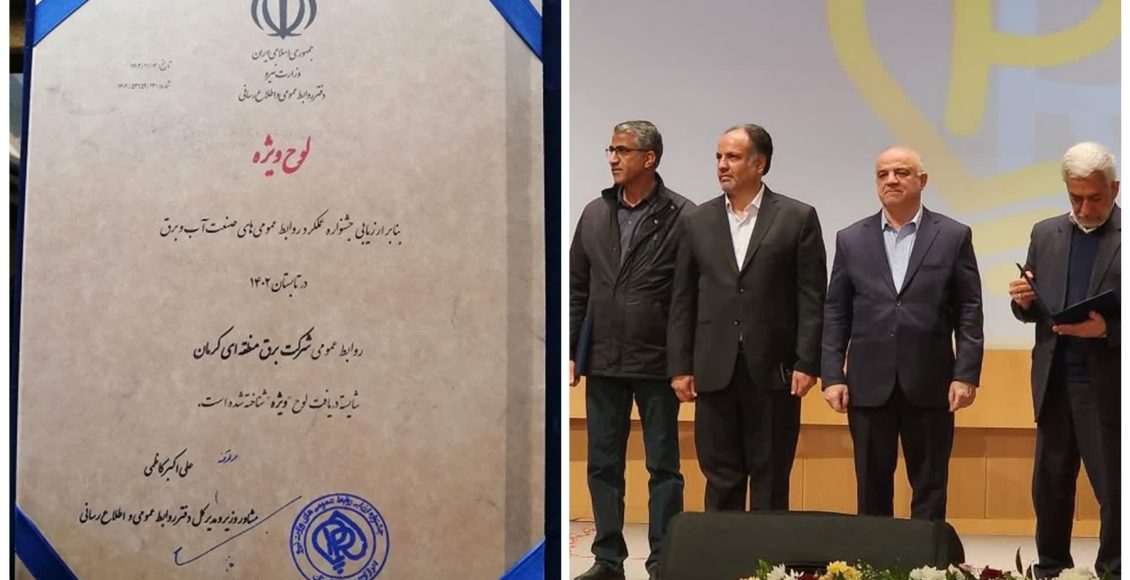 این مراسم که در محل تالار اجتماعات وزارت نیرو با حضور وزیر نیرو و معاونان ایشان برگزار گردید از روابط عمومی ها در سه سطح قابل تقدیر، برتر، ویژه.تقدیر به عمل آمد که تنها روابط عمومی برق منطقه ای کرمان از میان 16 شرکت برق منطقه ای موفق به دریافت لوح ویژه این جشنواره شد و لوح سپاس به محسن عباسپور مدیر روابط عمومی این شرکت اهدا گردید.